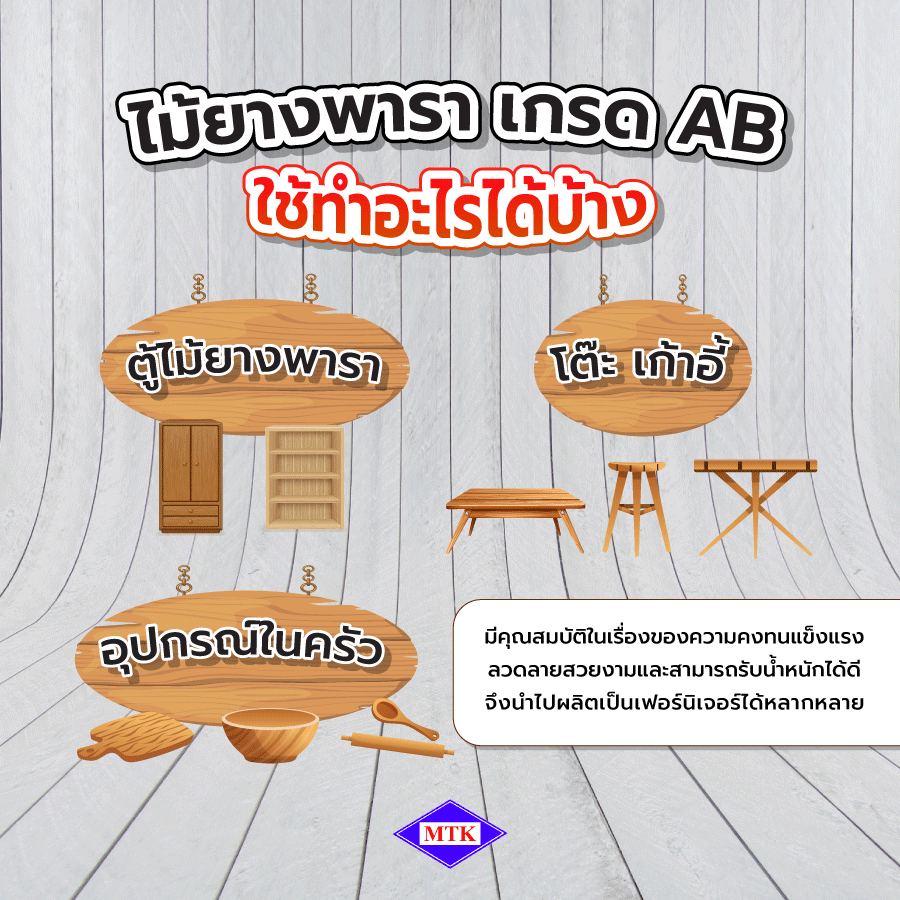 ไม้ยางพารา เกรด AB ใช้ทำอะไรได้บ้าง