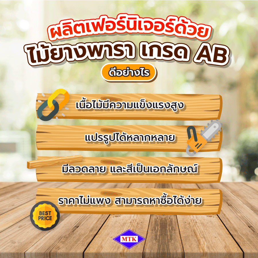 ผลิตเฟอร์นิเจอร์ด้วย ไม้ยางพารา เกรด AB ดีอย่างไร